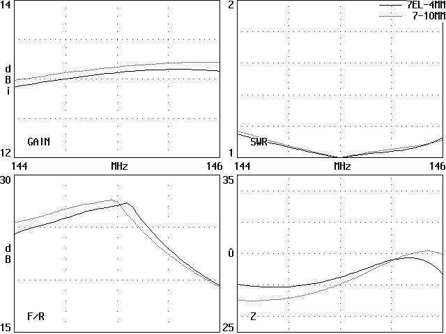Take a look of an overall comparision of the two antenna versions (10 mm elements version) done with YO 6.58 de K6STI. Mechanical datas: The mechanical dimension just changed slightly: